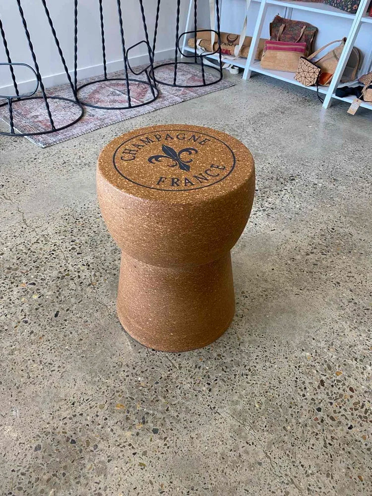 LISBON- Cork champagne stool. Unique solid cork stool. Also can be used as a bed side table. 47cm high and 30cm diameter top. $375