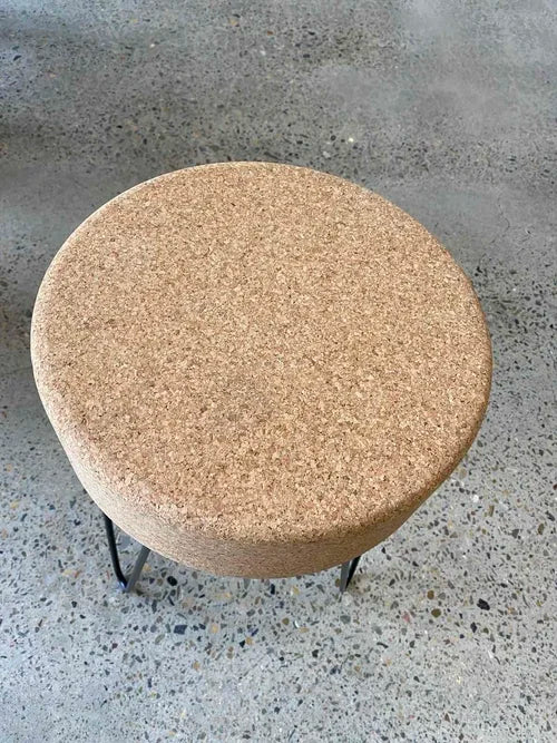 Cork's inherent properties—including natural insulation, sound absorption, and lightweight construction—make this stool both practical and environmentally conscious. The hand-finished wrought iron legs provide industrial contrast, creating visual interest whilst ensuring robust weight distribution.