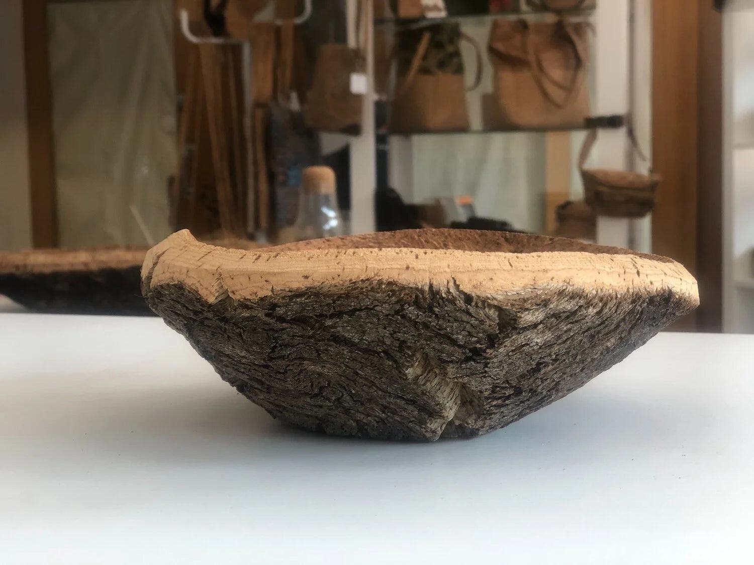 This is a unique small bowl made from Virgin Cork, which is the first harvest from the Cork Oak tree. It is a raw natural product straight from the tree. This bowl can be used as a centrepiece on your table.